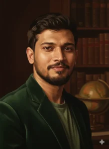 ✅ Nano Banana Prompt: Create a square-format, classic portrait, making sure the face is an identical match to the uploaded photo. The subject is illuminated with soft, warm, indirect lighting that emulates light from a north-facing window, reminiscent of Renaissance portraiture. His gaze is direct and intelligent, with a hint of a knowing smile. He is wearing a subtly textured, deep forest green velvet jacket. The background is a rich, dark, slightly blurred academic study with faint hints of antique books and a globe, adding to the intellectual gravitas. The final image should possess a timeless, painterly quality with exceptional skin texture and subtle color gradations.