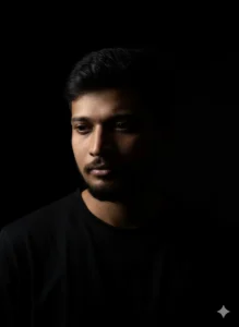 ✅ Nano Banana Prompt: Create a horizontal, ultra-realistic portrait shot, using the exact facial features from the provided reference photo. The subject’s face is rendered with deep chiaroscuro lighting, where a single, powerful light source from a sharp angle carves out the contours of the face, leaving large areas in profound shadow. His eyes are directed off-camera, conveying deep introspection and gravity. The composition is a medium close-up, allowing subtle reflections in his eyes to be visible. The background is an infinite, inky black, accentuating the dramatic interplay of light and shadow on his face. He is wearing a dark, minimalist garment that blends into the background, ensuring all focus is on the facial drama.